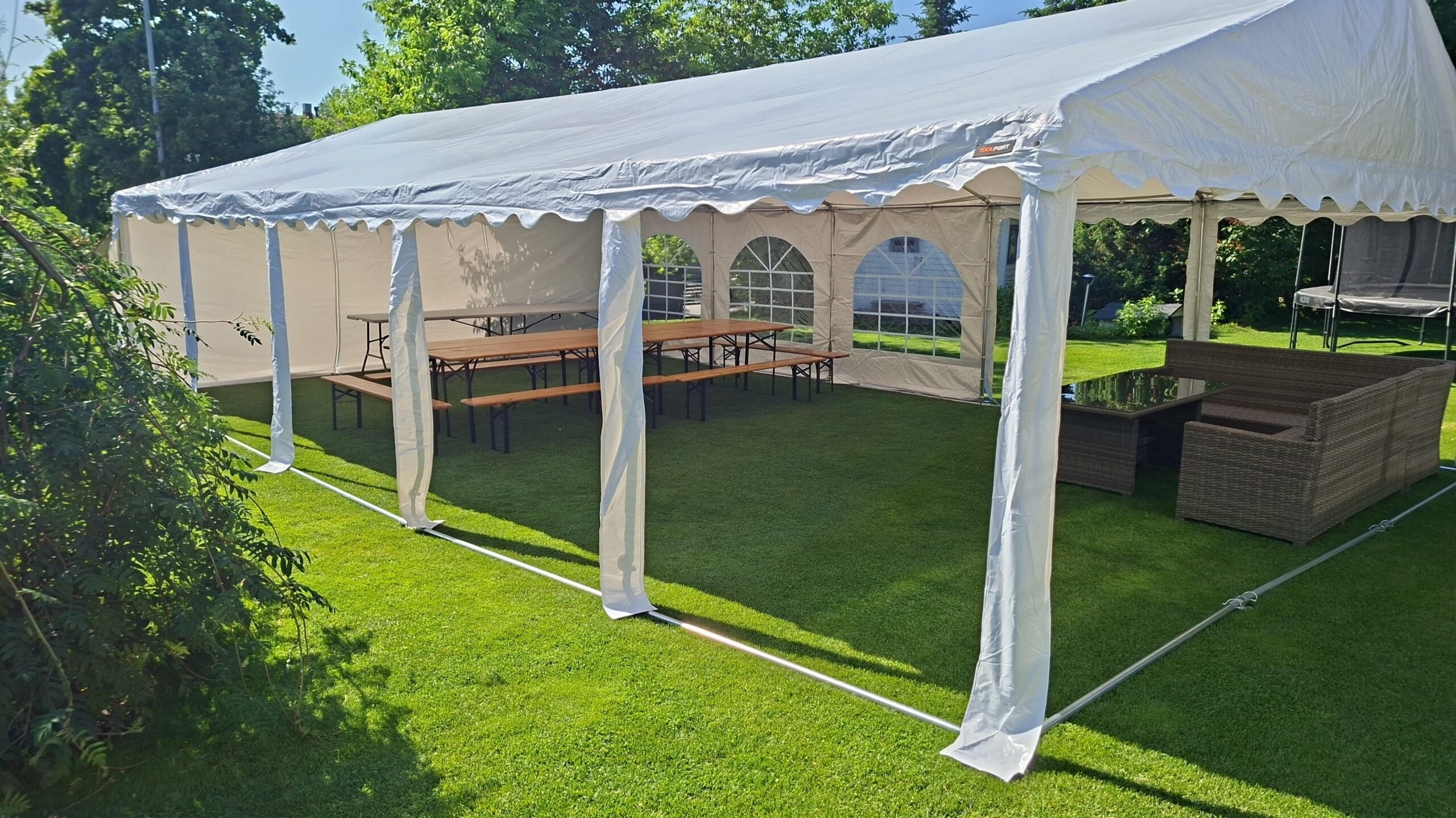 Telttaan mahtuu n. 70 henkeä ruokailemaan.